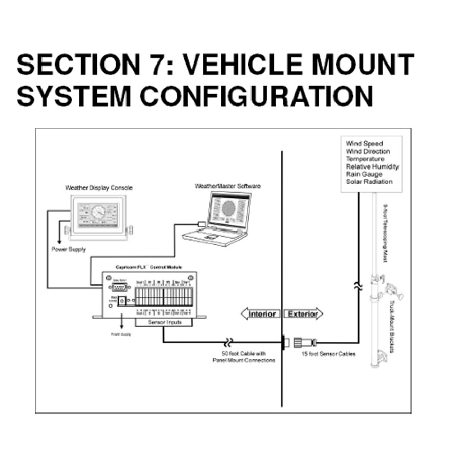 - (1) 50 ft internal Wind Sensor cable with vehicle mount female sensor connector (plus additional cable lengths, if ordered)
