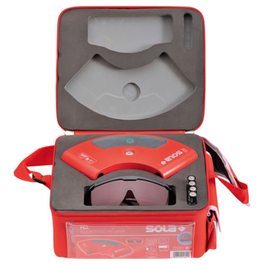 - Accuracy: 0.3mm/m (lateral deviation)/ 0.017° - Wave-length: 4 x 635 nm - Operating Radius: 32.8' per line - Dimensions: 2.2" x 9.25" x 4.5" - Weight: 1.3 lb (including batteries) - Operating Time: 16 hours (at 68 °F, all diodes) - Power supply: 4 x 1.5 V AA - Operating temperature: 14 °F - 122 °F - Perfect for tile installation - Place in the center of a room. "X" laser beams cover the whole room - Adjustable feet for uneven surfaces - Limited Lifetime Warranty