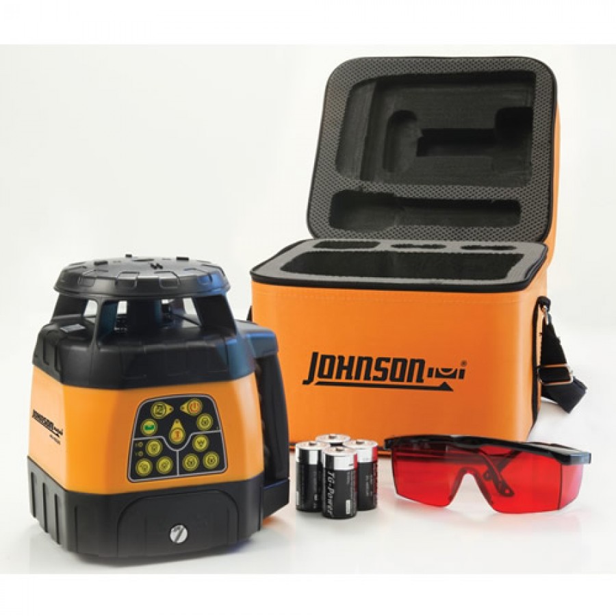 - (1) Johnson Level Self Leveling Rotary Laser 40-6526 - (1) Soft-sided carrying case - (1) Tinted glasses - (4) AA alkaline batteries - (1) User manual