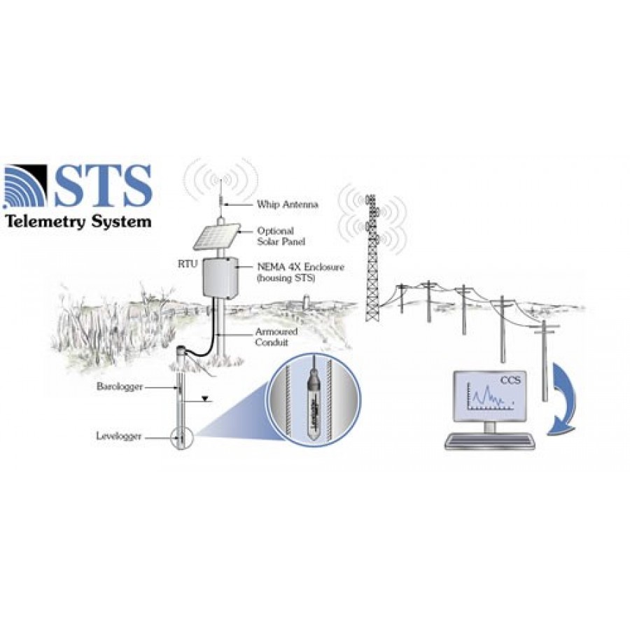 STS Gold Systems can be set up using GSM or CDMA digital  cellular, landline, radio, or satellite wireless communications.  They are powered by a sealed lead-acid 12V battery, with  optional solar trickle charging or direct AC power. RRL Gold  Radio Stations use six replaceable lithium batteries, and also have  the option of a back-up power source. STS Gold Telemetry Systems are ideal for large networks.  Hundreds of remote stations can report to a single Home  Station computer. RRL Gold Radio Telemetry is ideal for small closed loop networks.