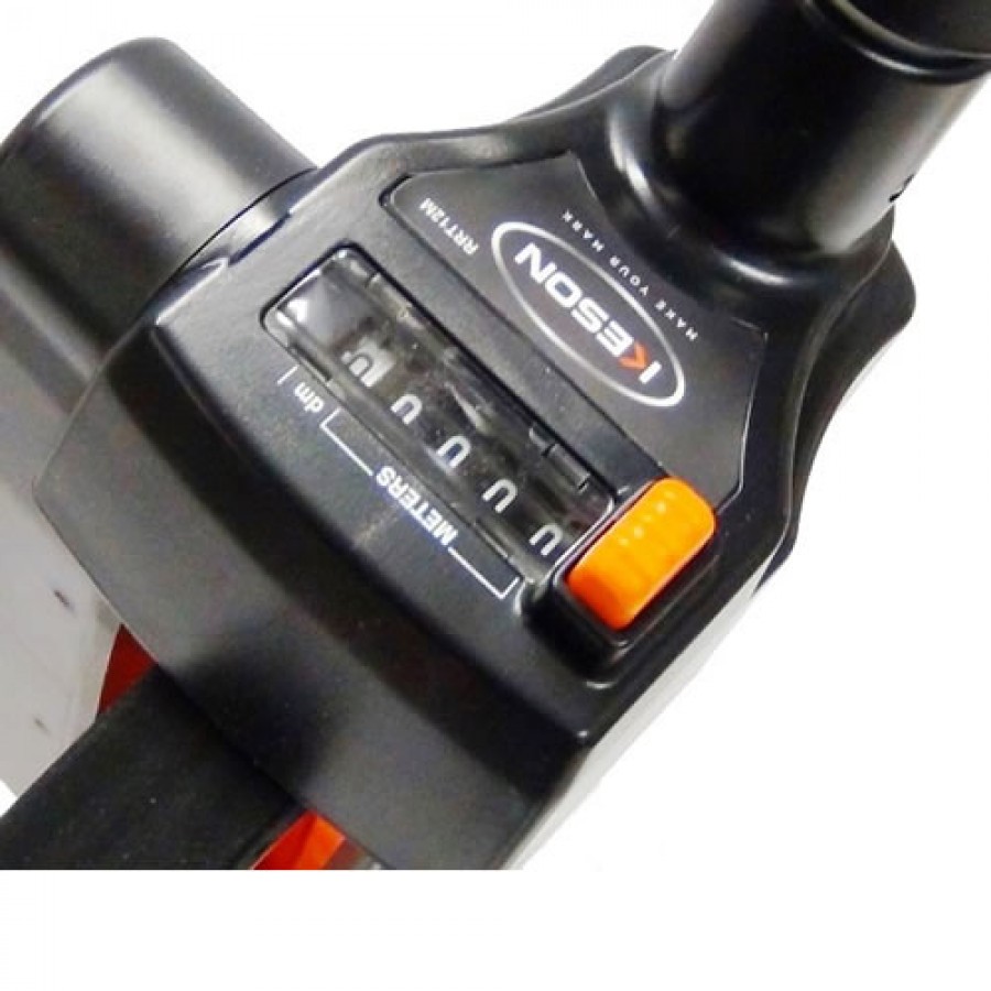 Aligning for perfect balance, the centerline handle is designed with a counter on the top wheel which makes measuring easier and more accurate. As an additional feature, its three feet flip-down kickstand keeps the wheel upright when in hands-free mode. Also, the Keson Top Reading measuring wheel features a collapsing hinge and can fold-down to 1/2 its size for storage and portability.