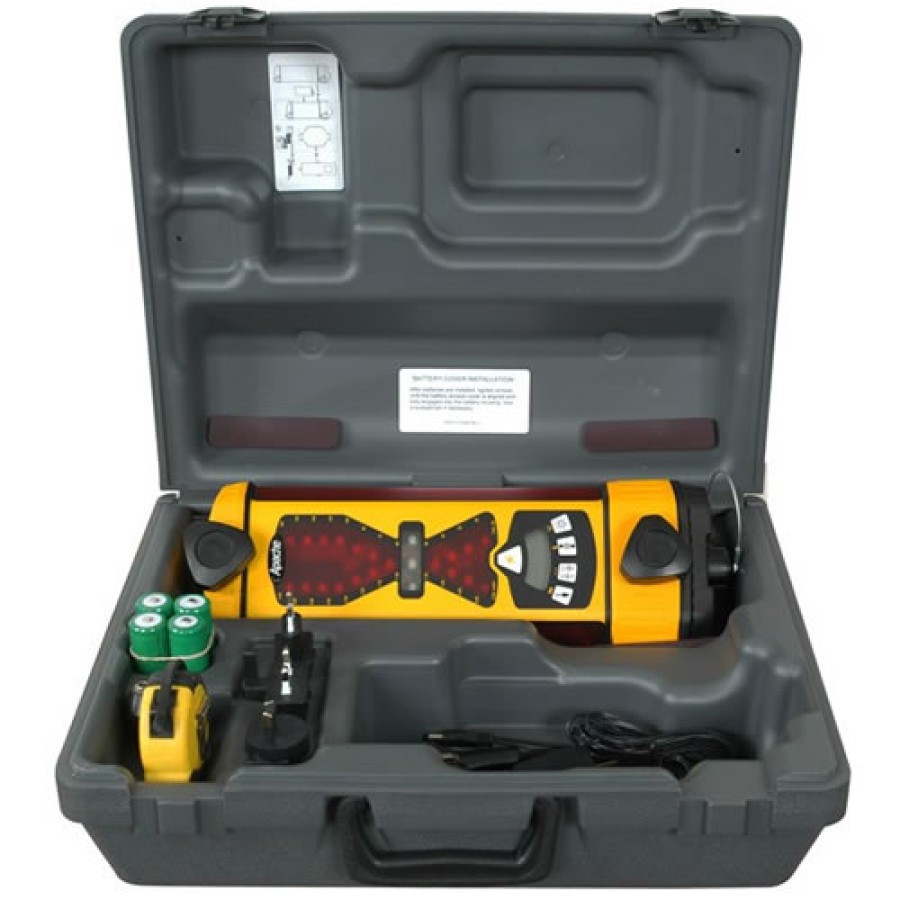 - Four selectable accuracies - Angle compensation indicator - Built-in plumb indicator - 360-degree reception angle - 8 display channels - 8.75-inch capture height - Center and offset on-grade - Super bright LEDs - Automatic shutoff - LCD display - 75-hour battery life - Aluminum cast housing